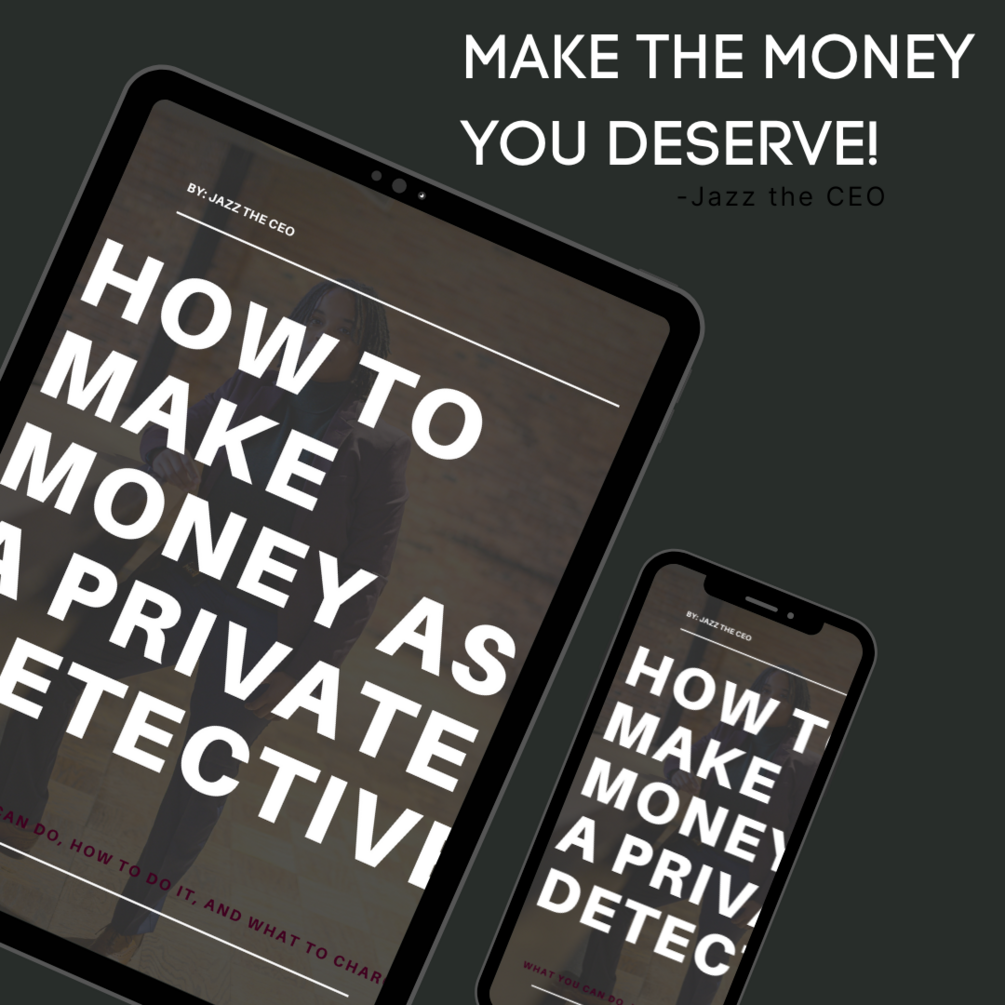 How Jazz the ceo made he first 100k as a private detective , everything you need to know to join her team, start your own firm, make money, find your niche clientele , price yourself and promote yourself!