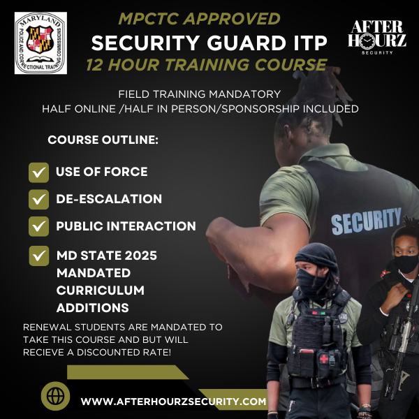 - At the end of this course you will receive a certificate of completion , position on After Hourz roster, sponsorship for your MD state guard card.